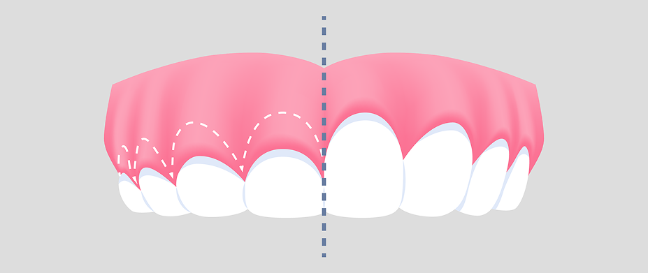 아치모양으로 둥글게 만드는 잇몸절제술이 필요합니다.